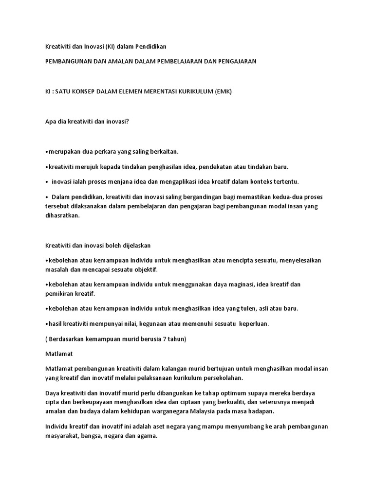 Isi Karangan Kreativiti Dan Inovasi Pdf